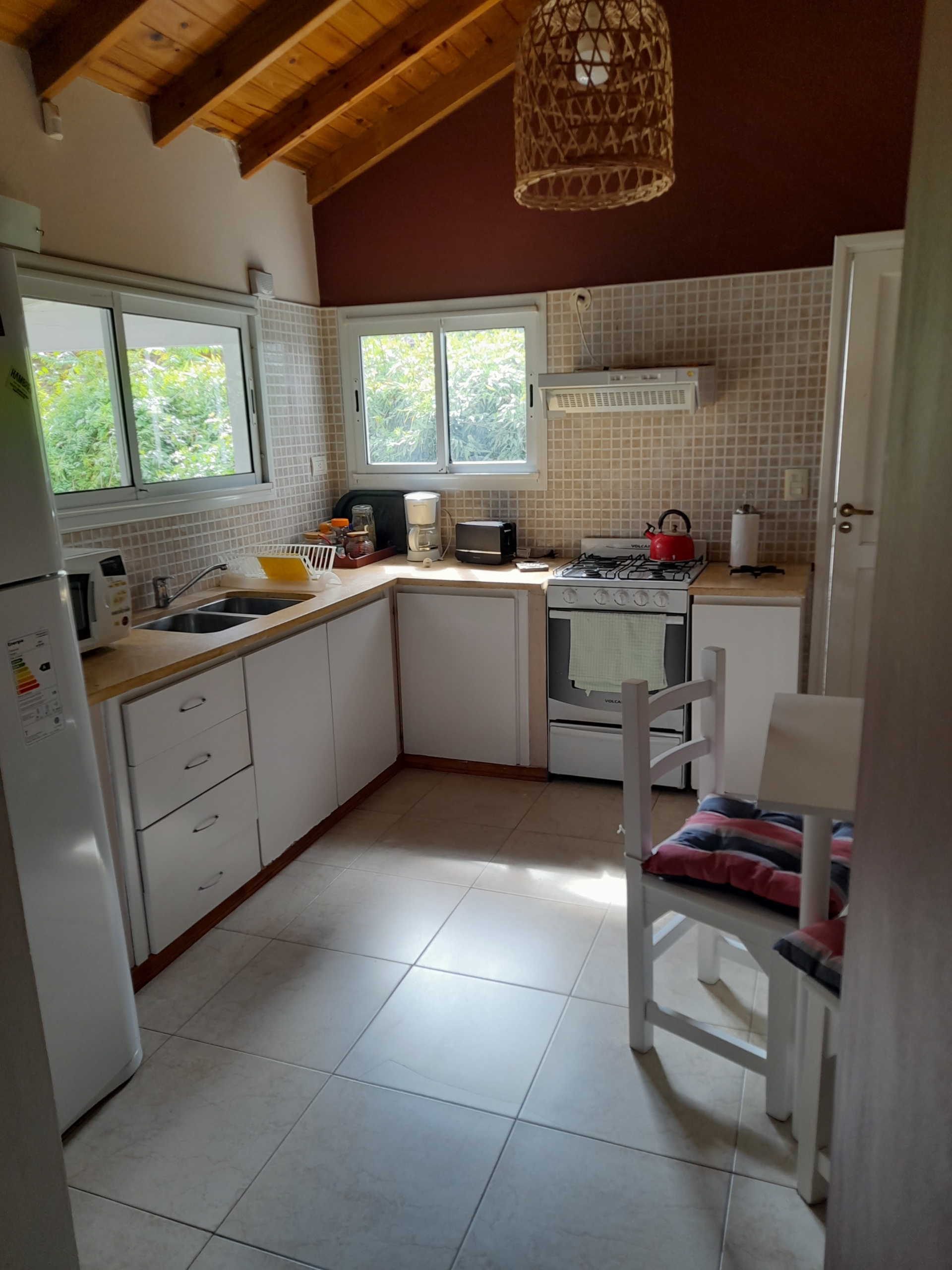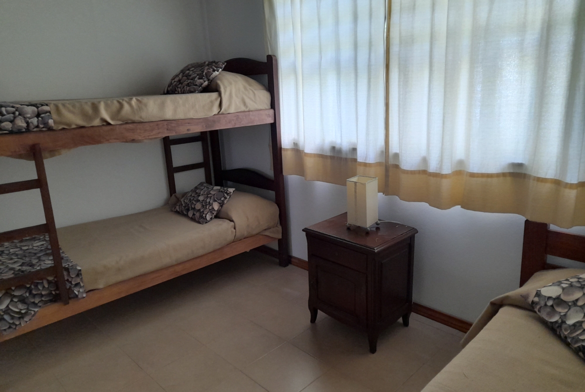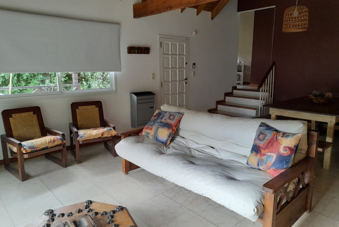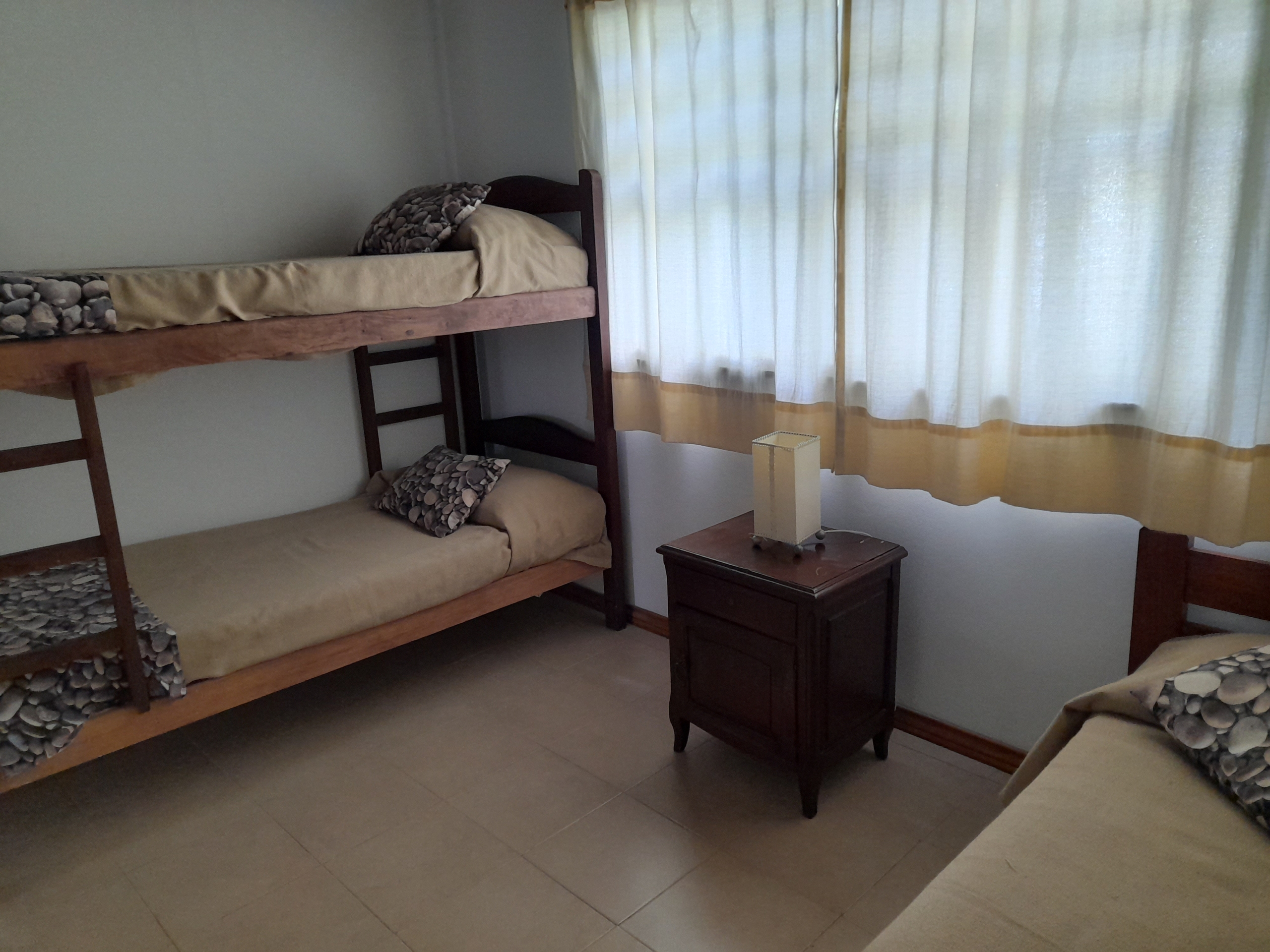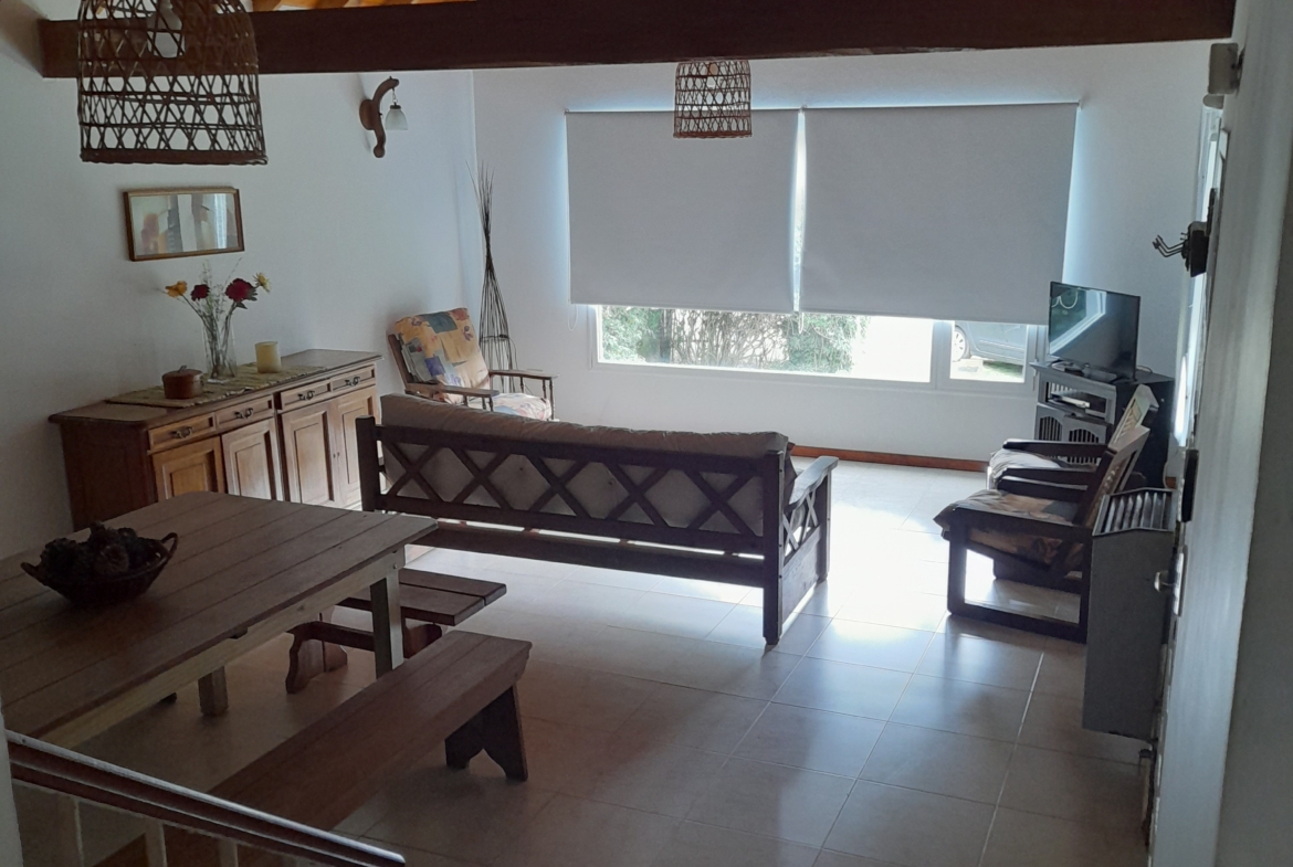 CUENTA CON AMPLIO LIVING COMEDOR, COCINA TOTALMENTE EQUIPADA , DORMITORIO PRINCIPAL EN SUITE, DOS DORMITORIOS MAS, UNO DE ELLOS CON DOS CAMAS SIMPLES, EL OTRO CON CAMA CUCHETA Y CAMA SIMPLE AMBOS CON PLACARD , BAÑO COMPLETO- POSEE UNA PARRILLA CON QUINCHO ABIERTO , ENTRADA PARA AUTO-